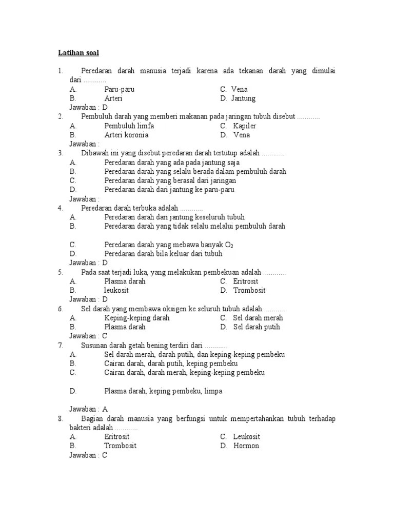 Contoh Soal Essay Sistem Peredaran Darah / Contoh Soal Jawaban Sistem Peredaran Darah Besar Pada Manusia / Soal sistem peredaran darah kelas 11 adi fun learning zat yang berperan dalam membawa nutrizi dan gas yang penting bagi tubuh yaitu.